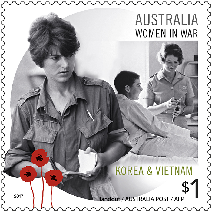 "Ce timbre, le quatrième d'une série qui commémore le siècle depuis la Première guerre mondiale, est la reconnaissance du rôle important joué par les femmes durant les guerres et les conflits", a dit Michael Zsolt, directeur philatélique de la Poste australienne.
